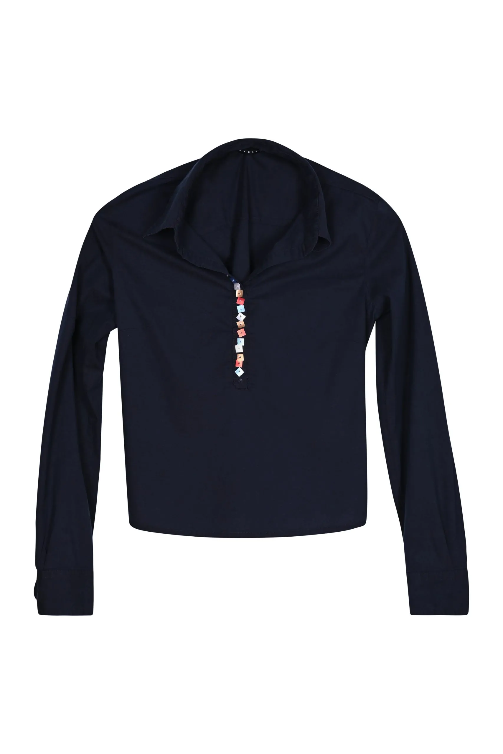 This elegant blouse in metallic gold could be your best friend for elegant occasions.