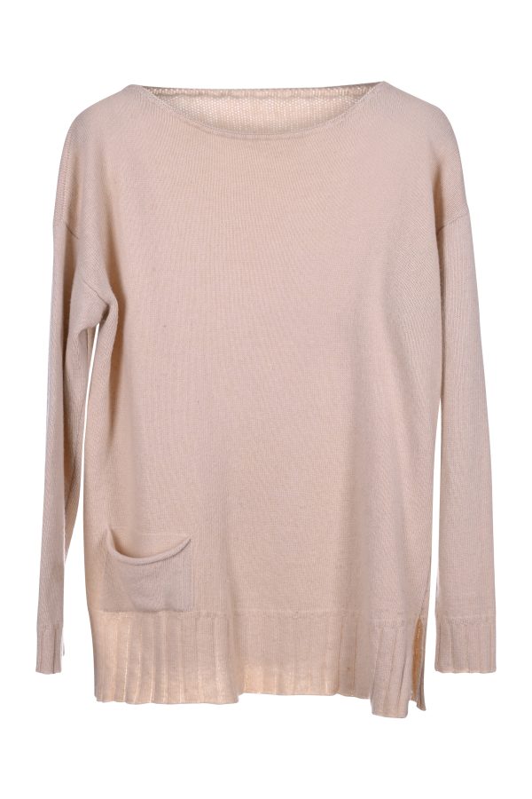 Beiger Pullover mit Tasche – Hergestellt in Italien