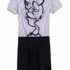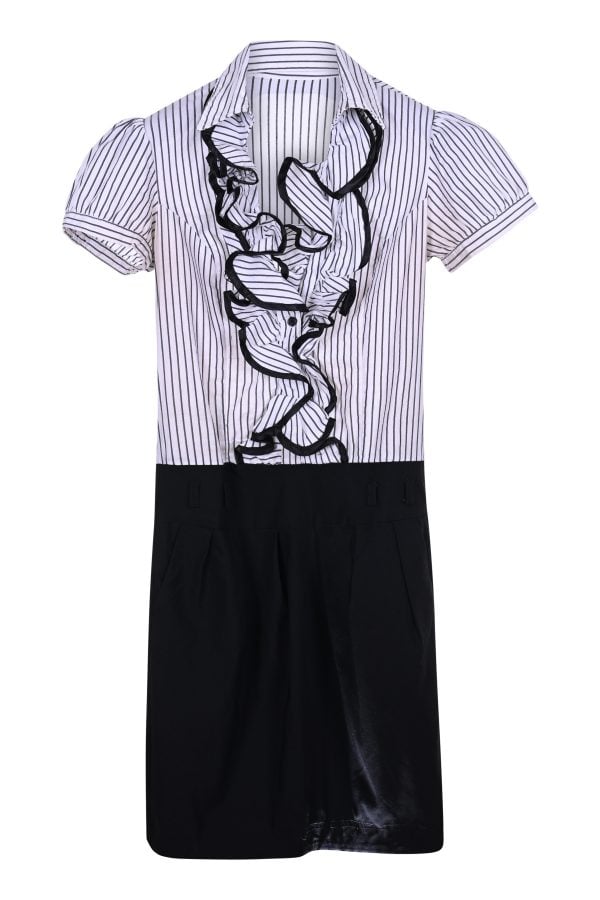 This interesting cotton dress is great for that casual chic style. It features boho-style ruffles and flounces to add volume to the upper body. It is suitable for a straight body shape (H-body type). The black-and-white vertical stripes are timeless. Can be washed in washing machines with a handwash sign. Minor flaws at the bottom.