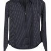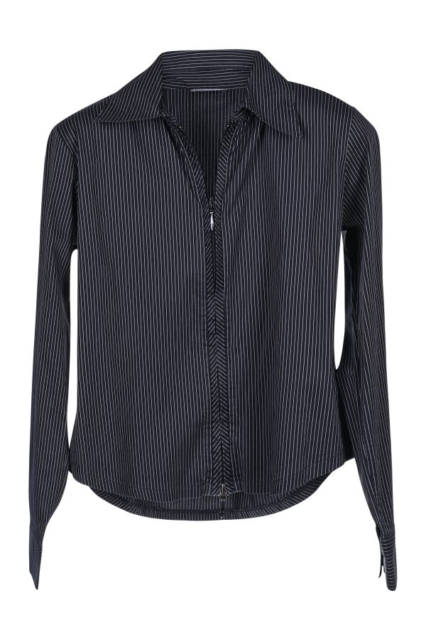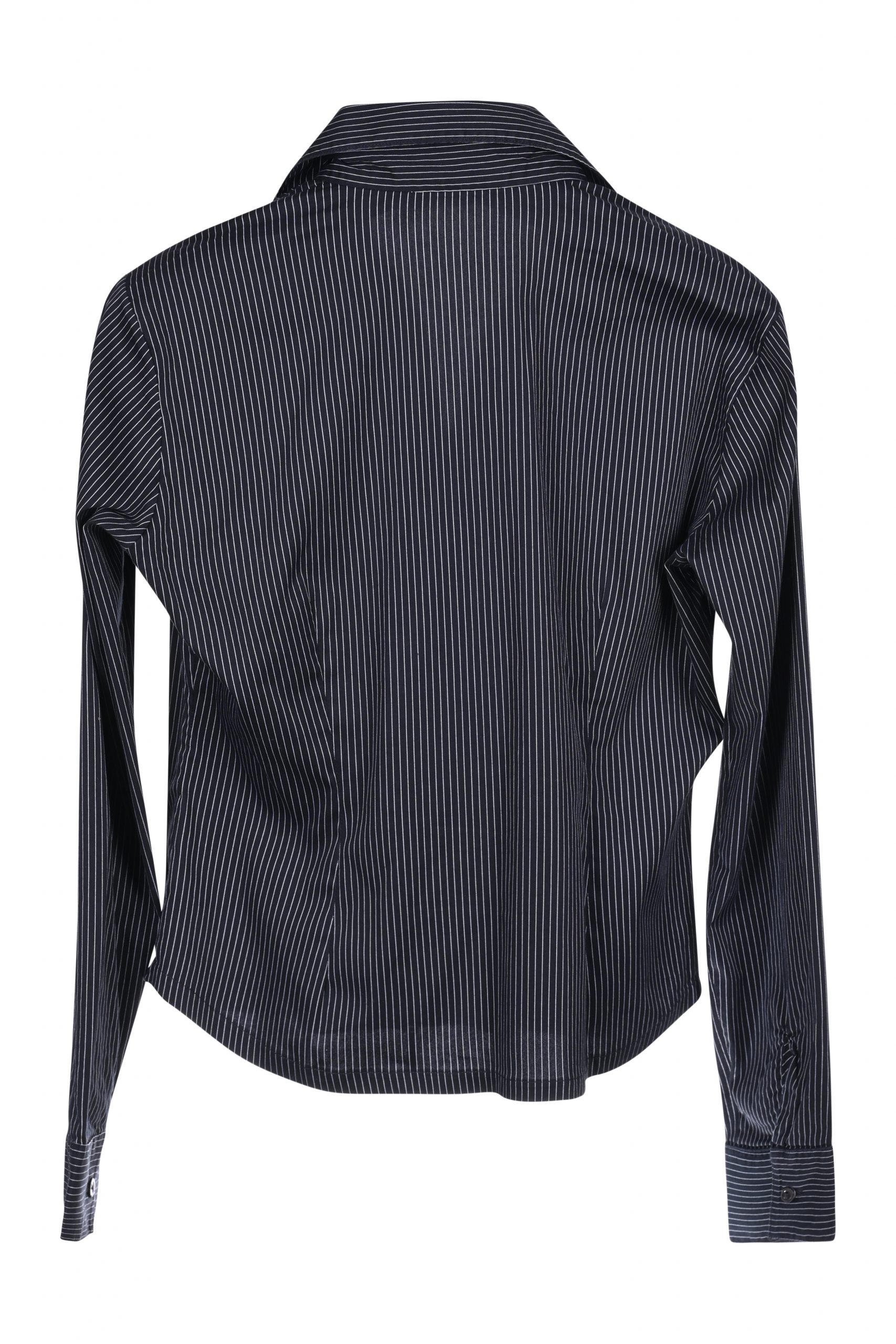 This Paris-style women’s blouse from French label Rayure is suitable for an office look. Due to its high cotton content, it is ideal for summer. It stands out with its classic sleeve cut and simple patterns in black and white. The vertical stripes create a slim silhouette. Pair with black trousers, black shoes, and a white handbag. There are no visible flaws.