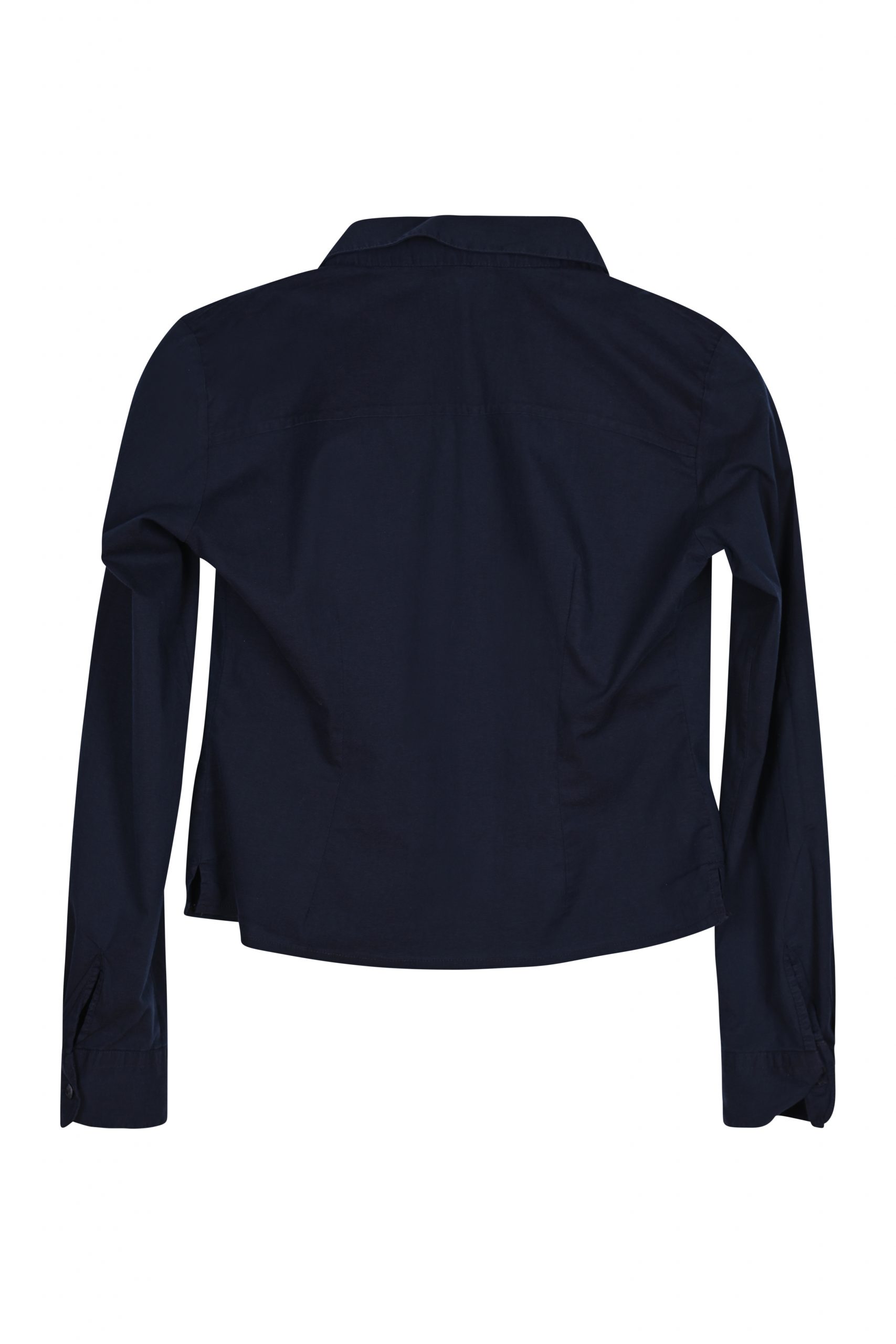 This midnight-blue shirt from Italian label Sisley stands out with its natural material and neutral colour. The classic cut of the shirt never goes out of fashion. The long-sleeved shirt goes well with white trousers but also with navy-blue trousers to create a monochromatic summer look. The shirt’s front decoration makes it suitable for evening occasions. When it comes to jewellery, go for earrings, and for shoes, pair with slingbacks or loafers.