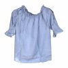 This light-blue, airy Carmen-style blouse is reminiscent of the Mediterranean sky. It goes well with pastel colours as well as neutral colours like white. The three-quarter length sleeves allow you to show off your arms with beautiful jewellery. Pair with a handbag with fringes to give the blouse a bohemian look. The blouse is easy to care for and machine washable at 30 degrees with white items. There are no visible flaws.