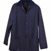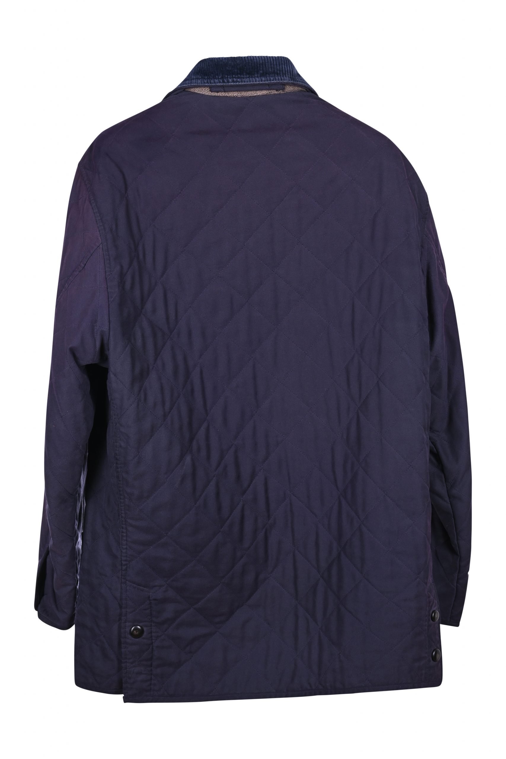 This quilted jacket (in dark blue) by Italian luxury brand Zegna stands out with its natural materials. The jacket is ideal for autumn or a mild winter and is good for layering. Pair it with flannel, corduroy, or tweed trousers. It can be easily combined with neutral colours such as grey, blue, or brown. There is a visible flaw on the front and a button on the side is missing, but this can be adjusted by a tailor.